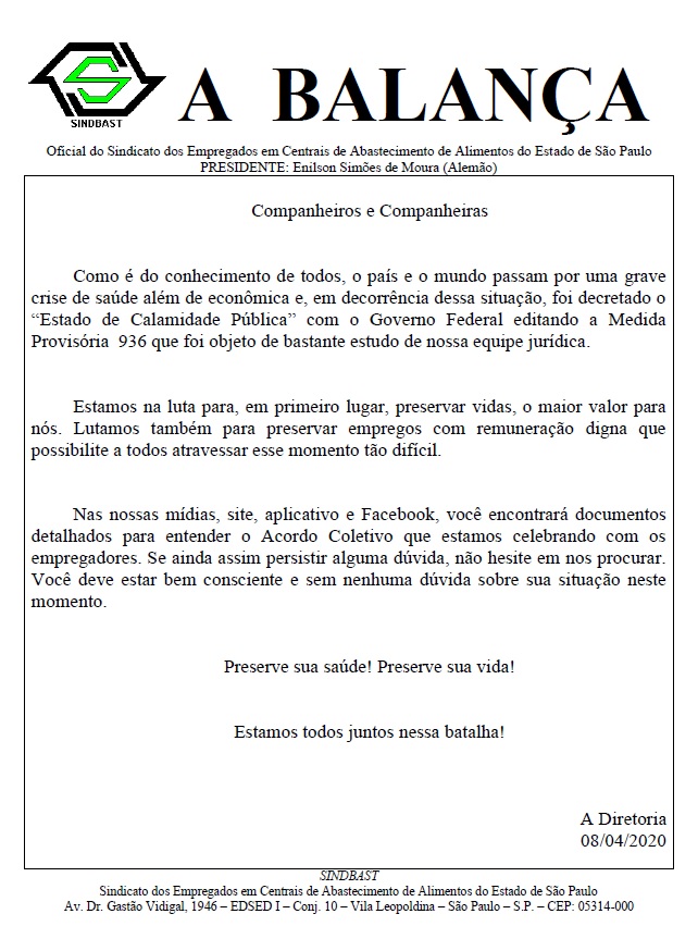 CEAGESP - SP BOXDestaque A BALANÇA por SINDBAST Última Atualização 8 abr, 2020 Compartilhar Compartilhar FacebookTwitterGoogle+ReddItWhatsAppPinterestO email