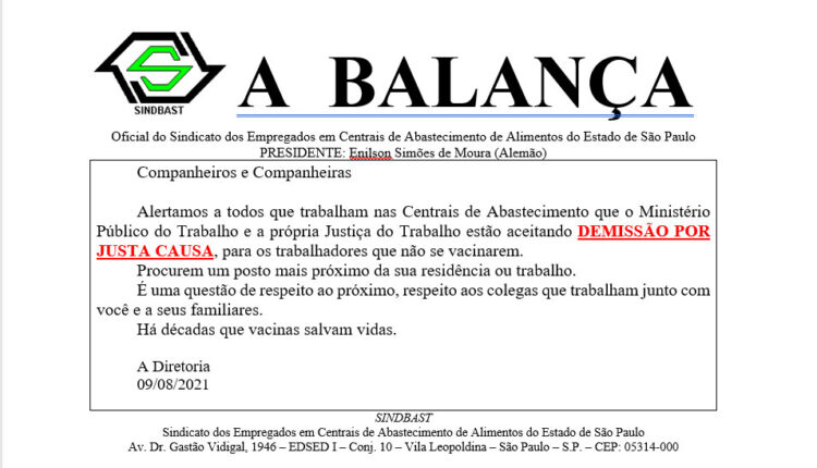 CEAGESP VACINAÇÃO X DEMISSÃO por SINDBAST Última Atualização 9 ago, 2021 Compartilhar Compartilhar FacebookTwitterGoogle+ReddItWhatsAppPinterestO email