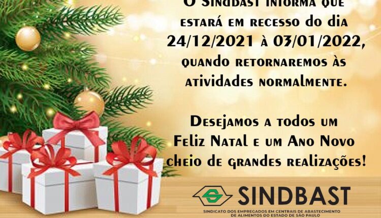 DestaqueNotícias Sindbast Recesso final de ano por SINDBAST Última Atualização 15 dez, 2021 Compartilhar Compartilhar FacebookTwitterGoogle+ReddItWhatsAppPinterestO email